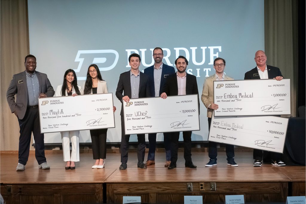 The New Venture Challenge (NVC) helps prepare Purdue student startups for market entry and fundraising. By the end of the program, each team created a pitch deck and pitched to the crowd at the expo.